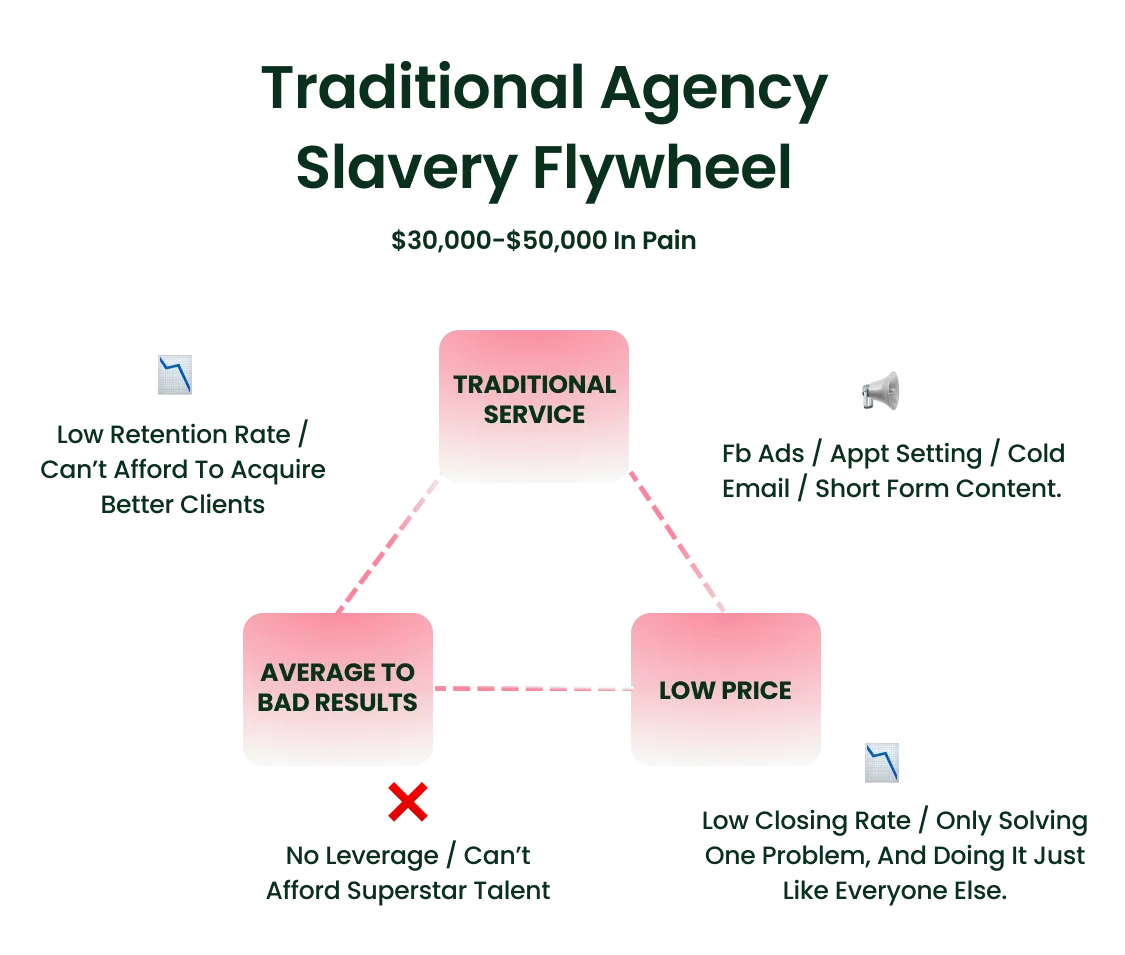 In 2022, I made the tough call to close my $25K/month lead generation agency. I realized scaling beyond $100,000/month would mean ballooning overhead and diminishing client results — a recipe for burnout and stagnation.