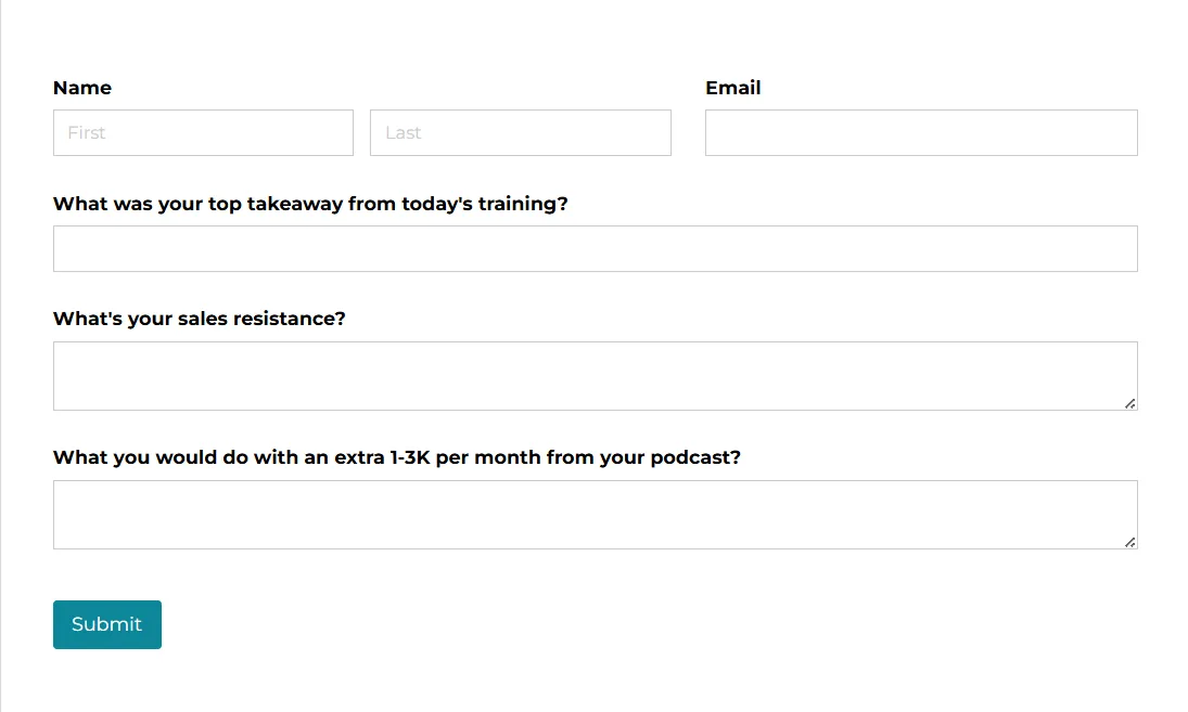 No, this bootcamp is self-paced and designed to guide you step-by-step through building a profitable podcast. You’ll get access to daily video trainings, workbooks, and bonus resources to help you simplify your business and grow faster. You’ll also be invited to Aleena’s private Facebook group, where you can ask questions and connect with other purpose-driven podcasters!